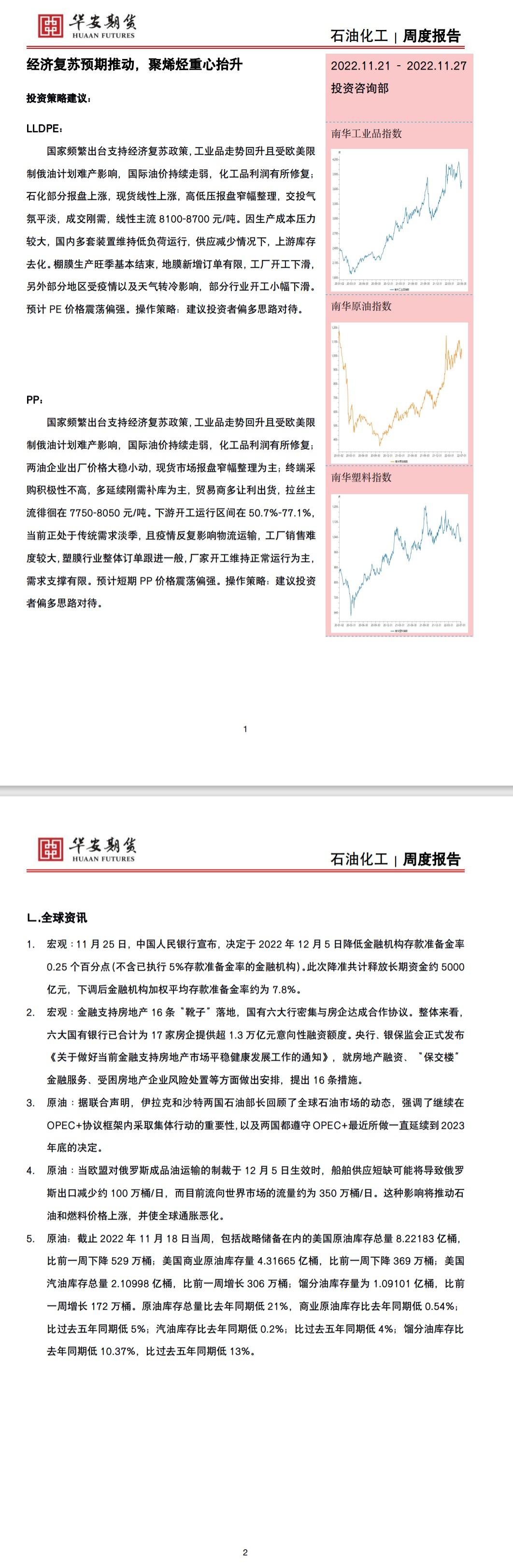 【华安期货】石油化工11月27日周报:经济复苏预期推动,聚烯烃重心抬升