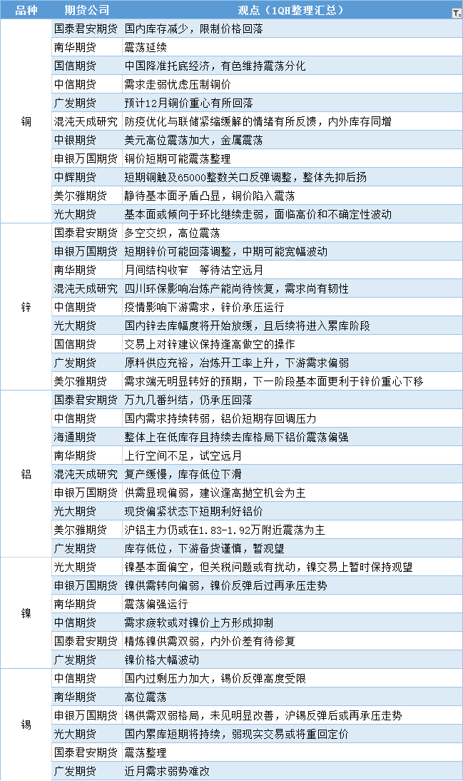 期货公司观点汇总一张图:11月28日有色系(铜、锌、铝、镍、锡等)