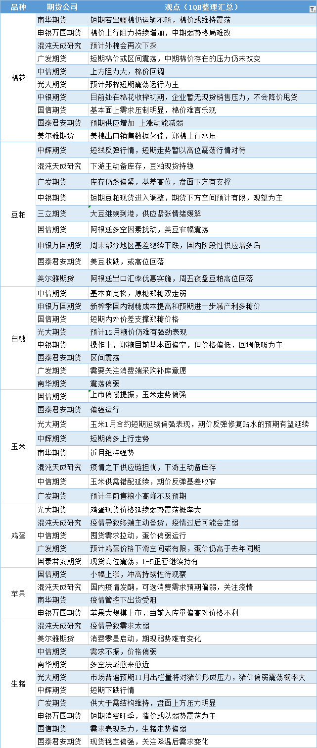 期货公司观点汇总一张图:11月28日农产品(棉花、豆粕、白糖、玉米、鸡蛋、生猪等)