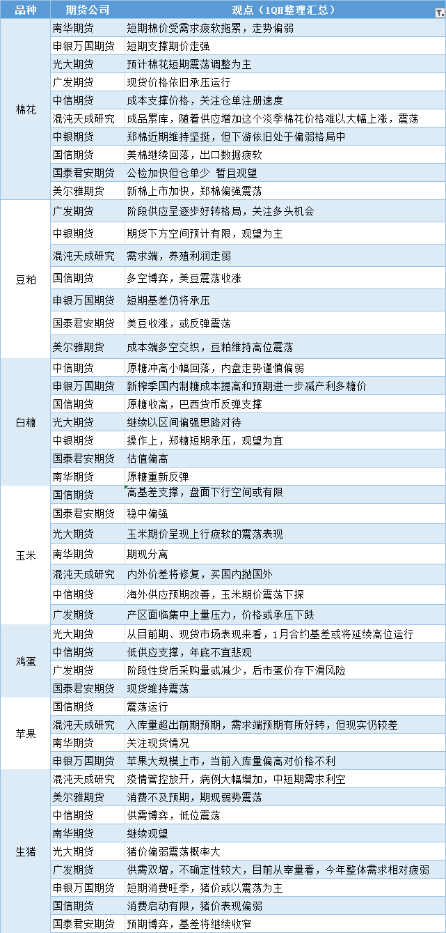 期货公司观点汇总一张图:11月21日农产品(棉花、豆粕、白糖、玉米、鸡蛋、生猪等)
