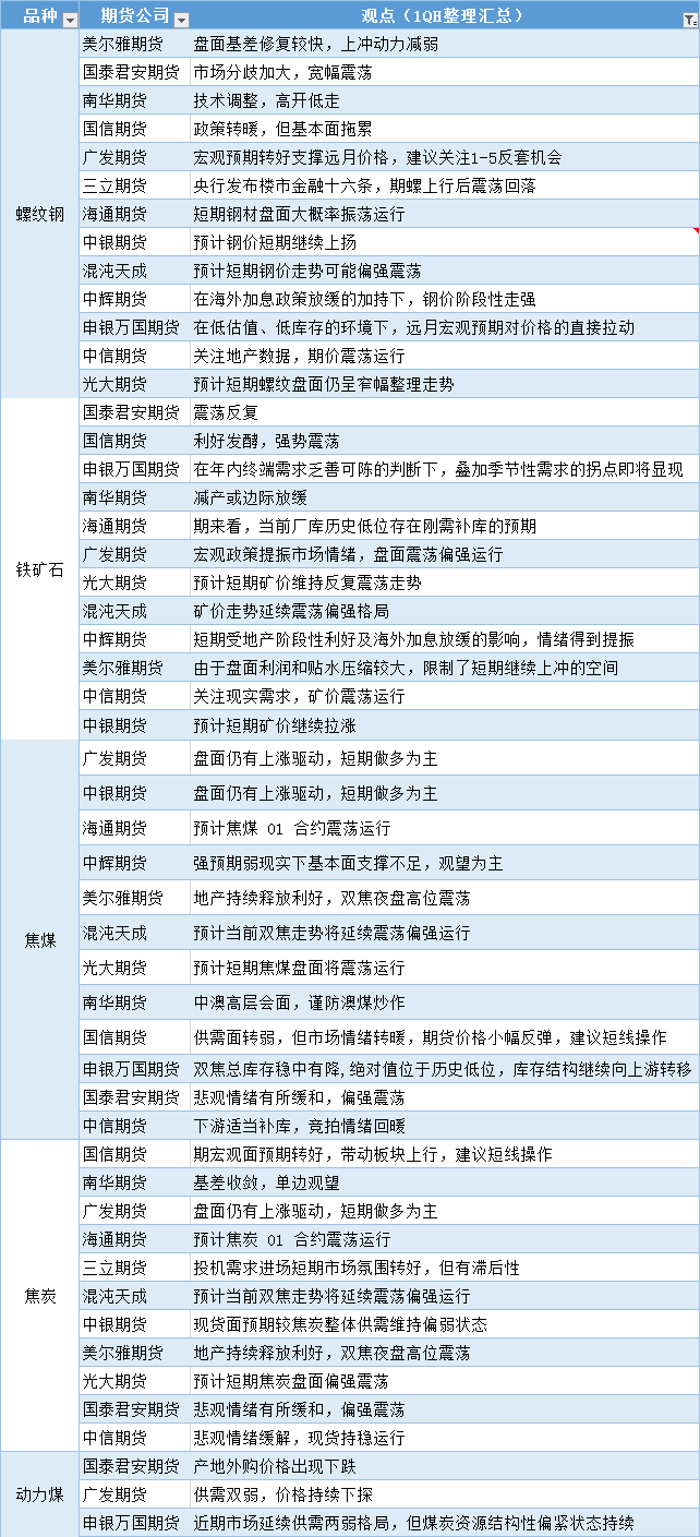 期货公司观点汇总一张图:11月15日黑色系(螺纹钢、焦煤、焦炭、铁矿石、动力煤等)
