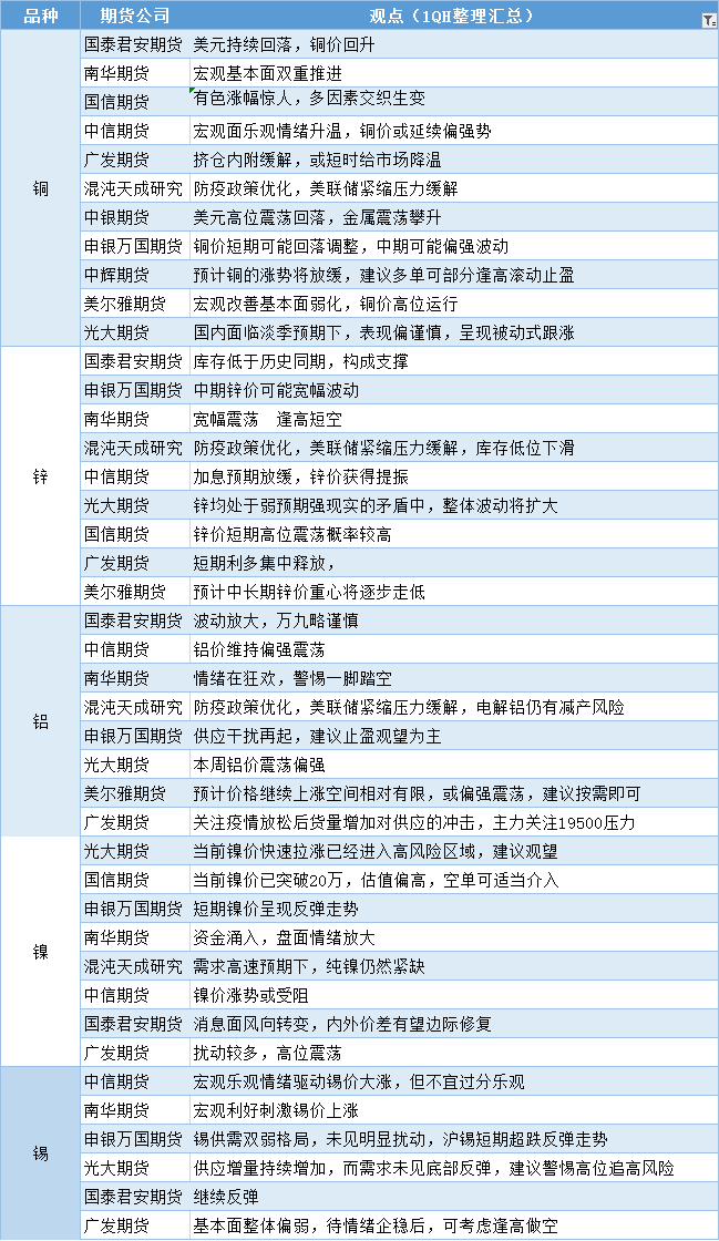 期货公司观点汇总一张图:11月14日有色系(铜、锌、铝、镍、锡等)