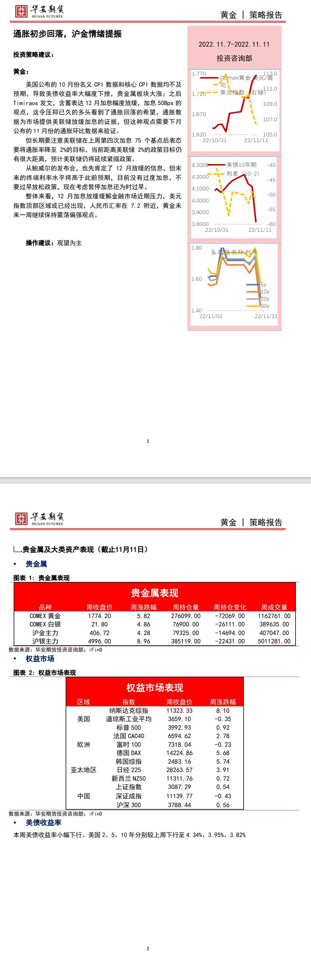 【华安期货】贵金属11月13日周报:通胀初步回落,沪金情绪提振