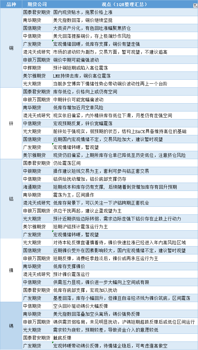 期货公司观点汇总一张图:11月8日有色系(铜、锌、铝、镍、锡等)