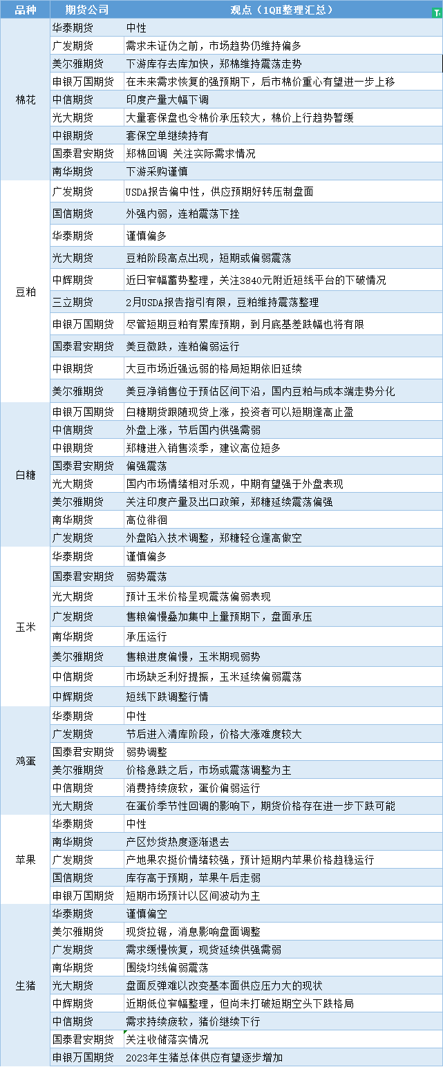 嘉盛集团APP讯——期货公司观点汇总一张图:2月10日农产品(棉花、豆粕、白糖、玉米、鸡蛋、生猪等)