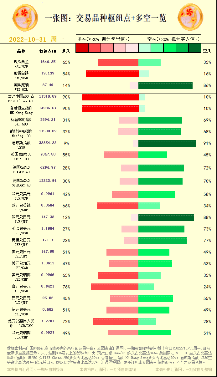 一张图:交易品种枢纽点+多空占比一览(2022/10/31周一)