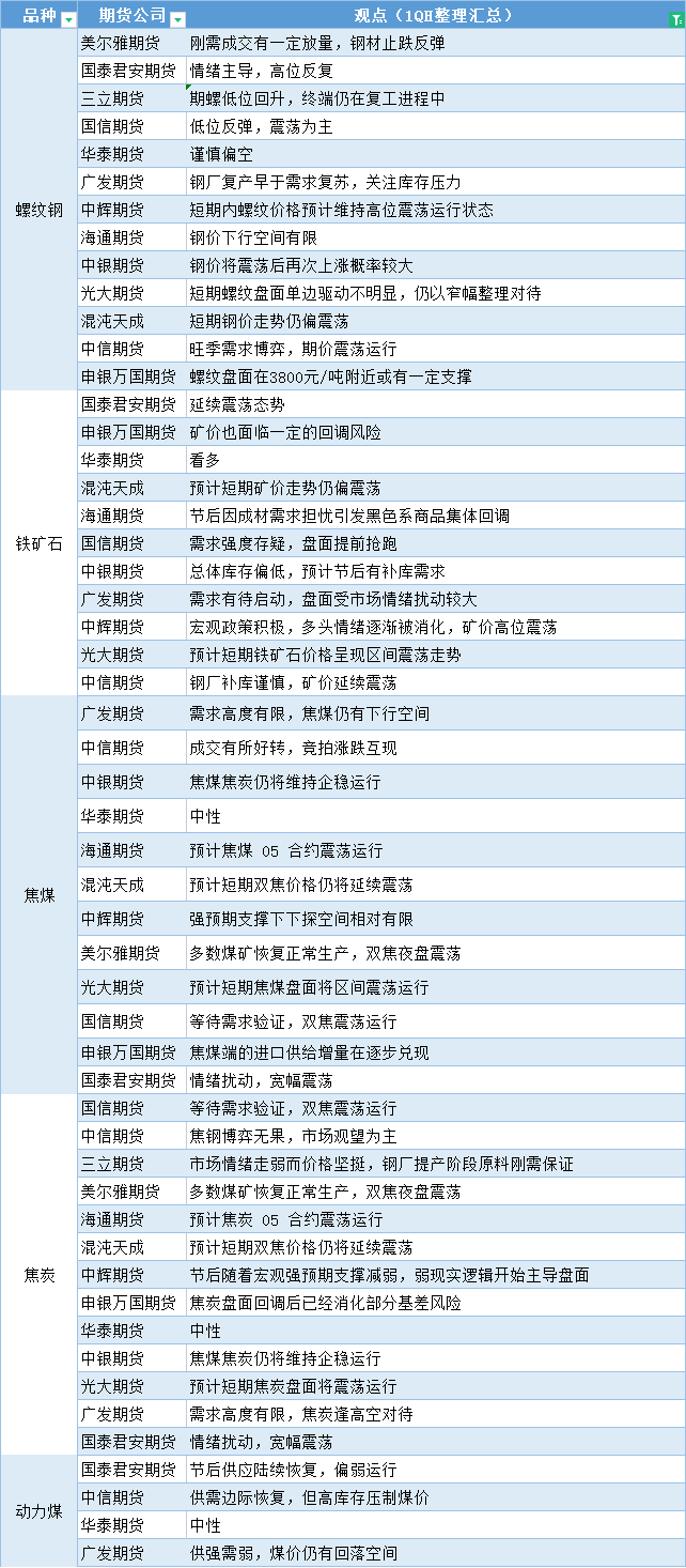 期货公司观点汇总一张图:2月9日黑色系(螺纹钢、焦煤、焦炭、铁矿石、动力煤等)
