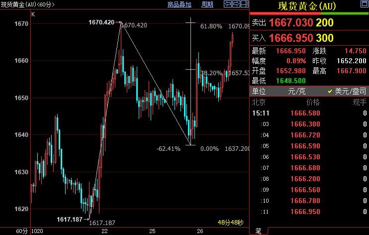 周三(10月26日),国际金价走高,受助于美元疲软和美国国债收益率下降。投资者期待美联储更新政策立场,以判断其是否可能放慢加息步伐。北京时间15:23,现货黄金上涨0.74%至1665.26美元/盎司...