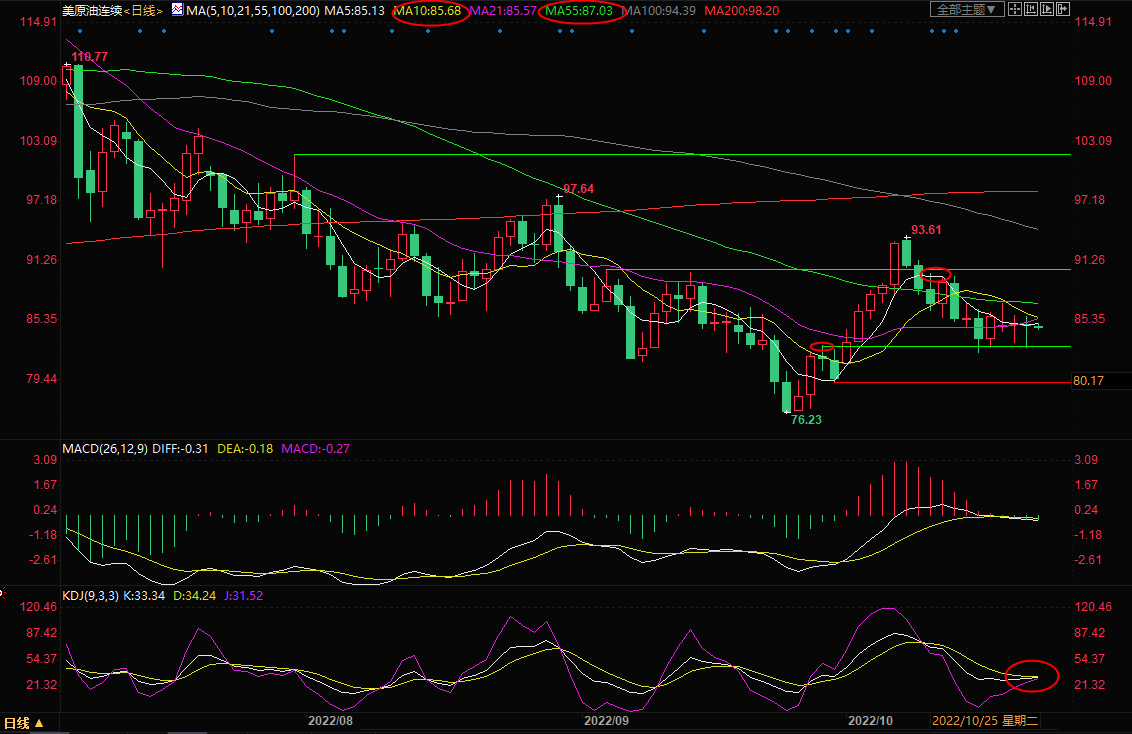周二(10月25日)亚欧时段,美原油窄幅震荡,目前交投于84.77美元/桶附近,本周OPEC+消息相对较少,市场观望情绪较浓,一方面,周一欧美国家10月份的PMI数据表现较差,增加了市场对全球经济衰退...
