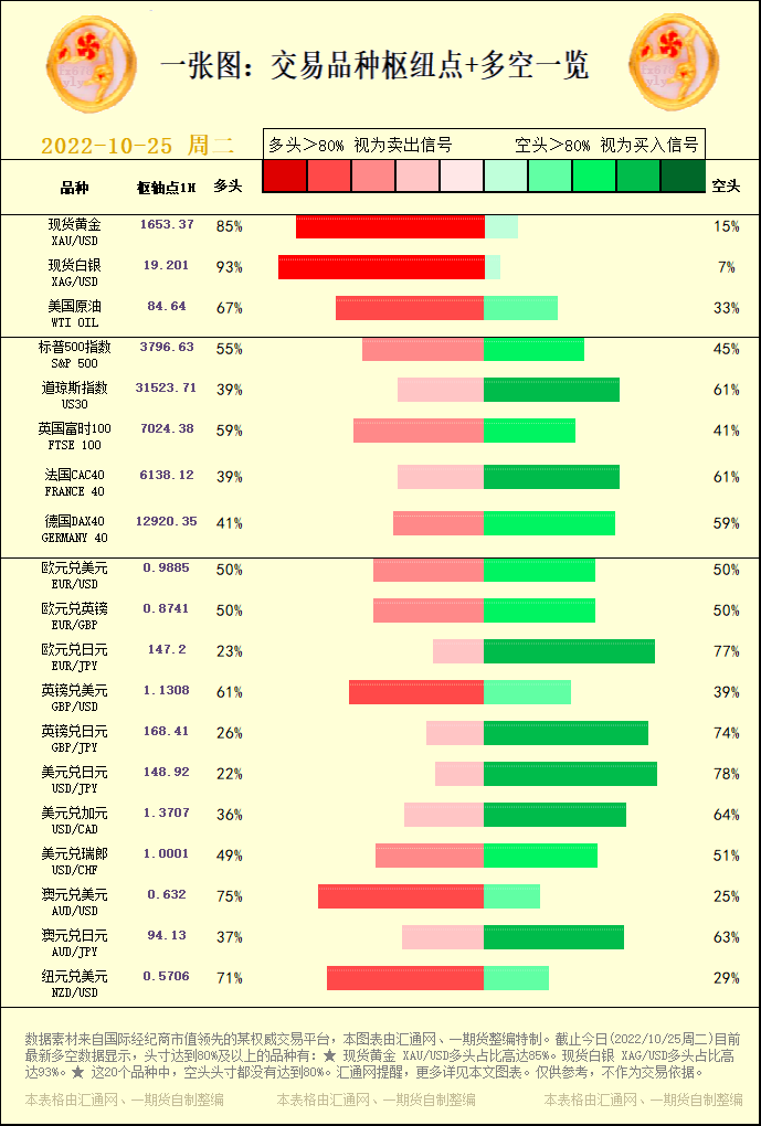 一张图:交易品种枢纽点+多空占比一览(2022/10/25周二)