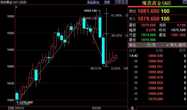 嘉盛集团APP讯——周四(2月9日)亚洲时段,现货黄金震荡微涨,目前交投于1879.43美元/盎司附近,上周靓丽的非农数据后,本周美联储官员的讲话并没有特别的鹰派,美联储决策者仅支持以更小幅度加息,美...