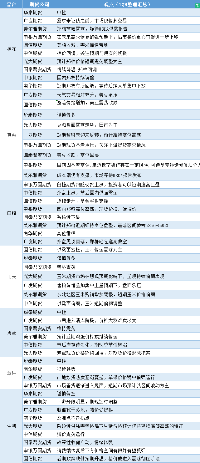 嘉盛集团APP讯——期货公司观点汇总一张图:2月8日农产品(棉花、豆粕、白糖、玉米、鸡蛋、生猪等)