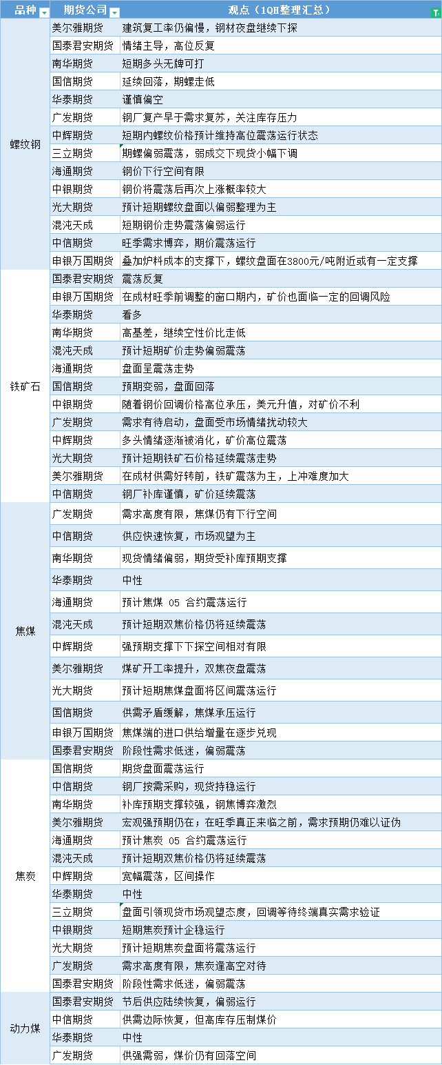 期货公司观点汇总一张图:2月8日黑色系(螺纹钢、焦煤、焦炭、铁矿石、动力煤等)