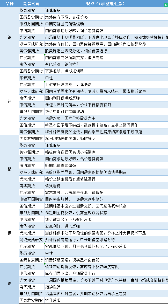 嘉盛集团APP讯——期货公司观点汇总一张图:2月22日有色系(铜、锌、铝、镍、锡等)