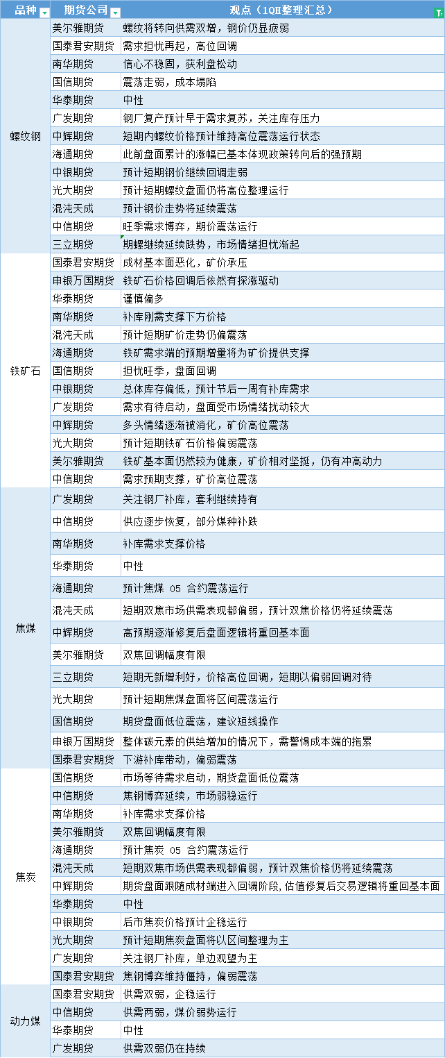 期货公司观点汇总一张图:2月3日黑色系(螺纹钢、焦煤、焦炭、铁矿石、动力煤等)