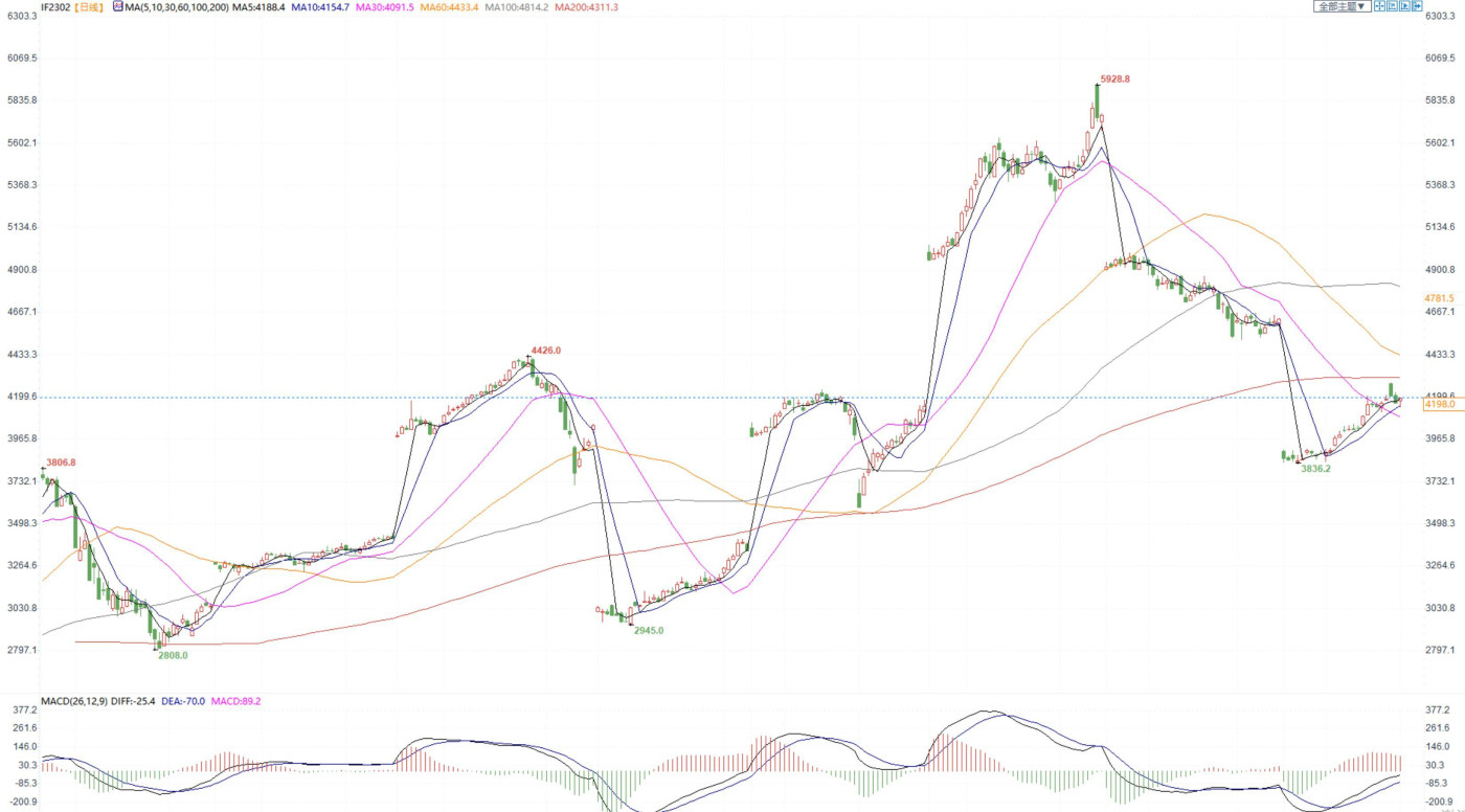 嘉盛集团APP讯——股指期货:成交额重回万亿,期指全线收涨 【今日涨跌】四大期指全线收涨。IH2302收盘价为2827.8,收涨0.26%;IF2302收盘价为4198.0,收涨0.57%;IC230...