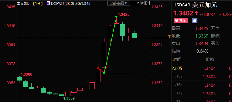 加银如期进一步放缓加息,美元兑加元短线上涨55点