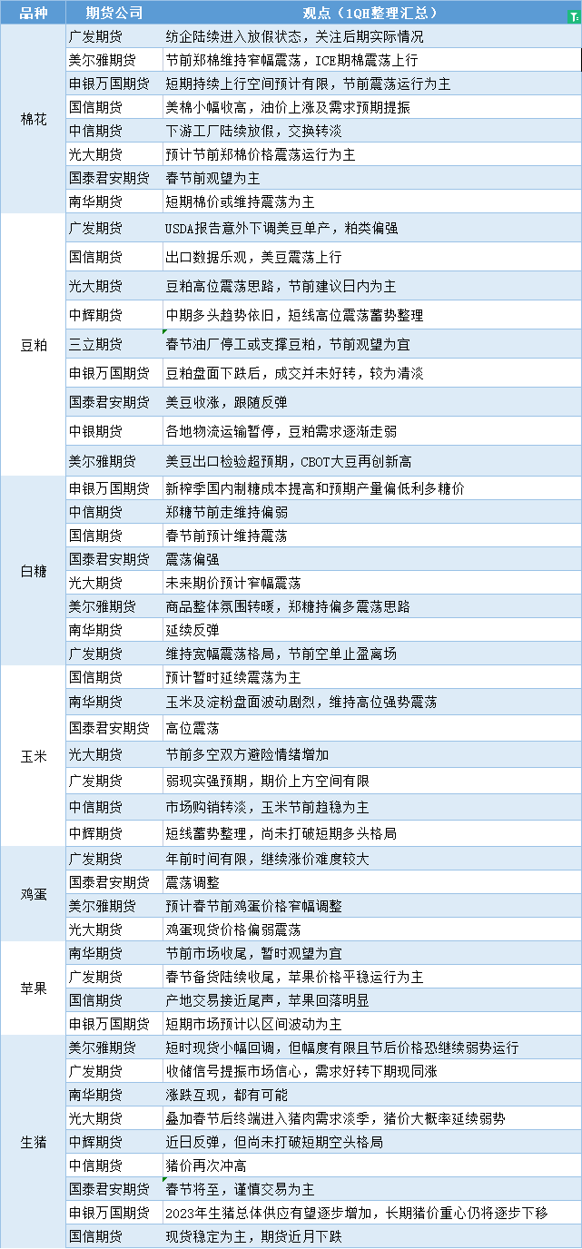 期货公司观点汇总一张图:1月18日农产品(棉花、豆粕、白糖、玉米、鸡蛋、生猪等)