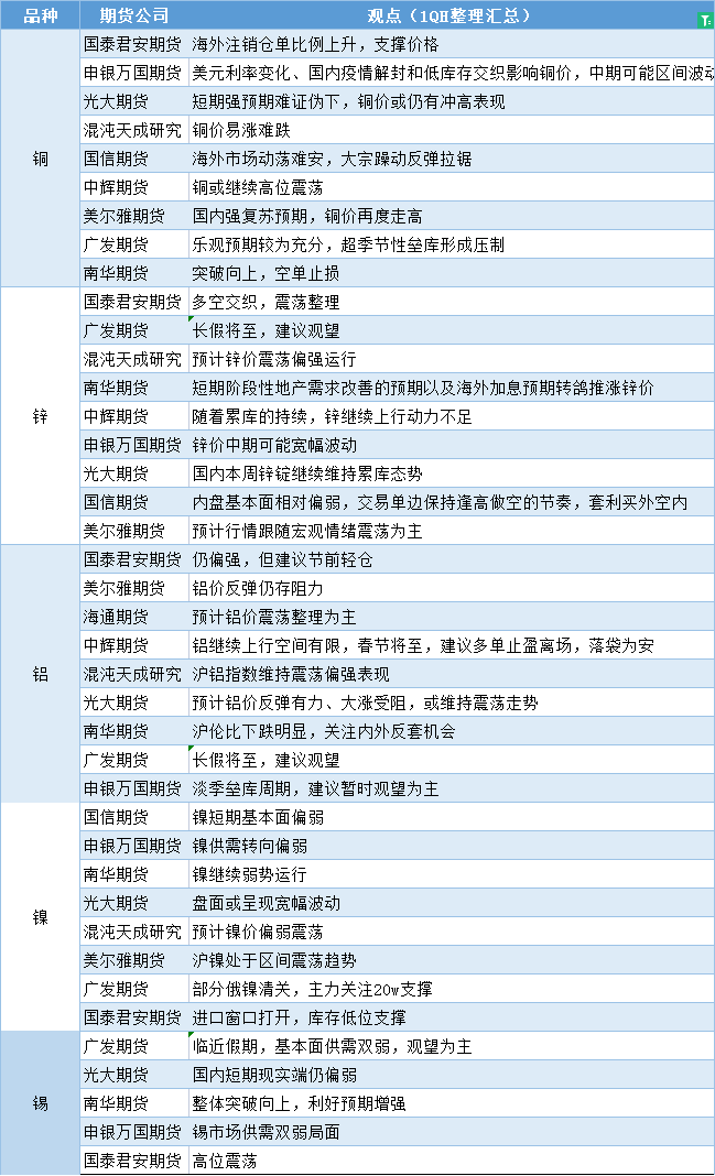 期货公司观点汇总一张图:1月18日有色系(铜、锌、铝、镍、锡等)