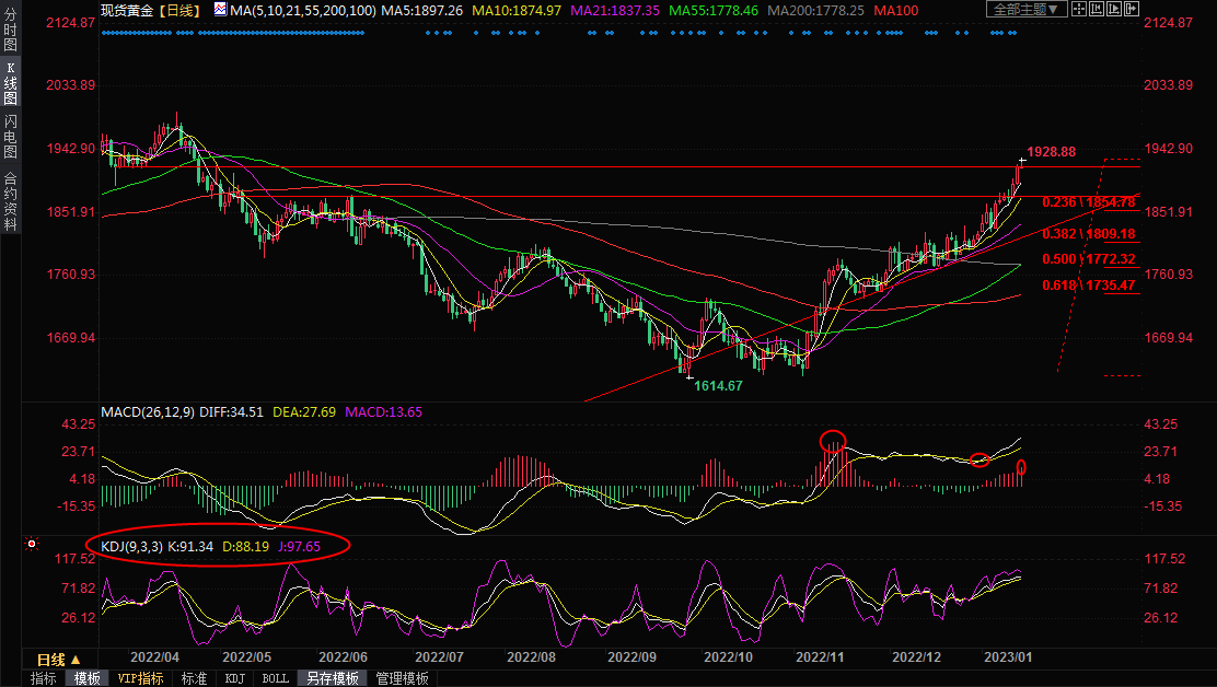 嘉盛集团APP讯——周一(1月16日)亚洲时段,现货黄金冲高回落,早些时候一度创4月25日以来新高至1928.88美元/盎司,主要是因为通胀预期持续降温,市场预期美联储会放缓加息,美元支撑延续跌势创6...