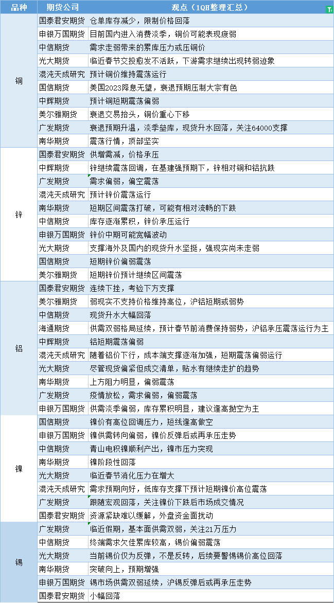 嘉盛集团APP讯——期货公司观点汇总一张图:1月5日有色系(铜、锌、铝、镍、锡等)