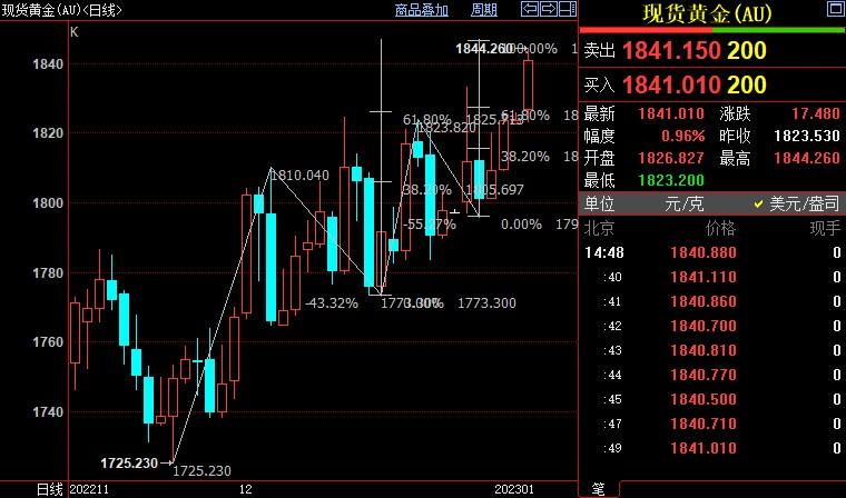 嘉盛集团APP讯——周二(1月3日)亚洲时段,现货黄金震荡走高,一度创6月24日以来新高至1844.13美元/盎司,各大投行预计美国经济将衰退,美联储政策将在2023年逐步转向,美元指数相对疲弱,给金...