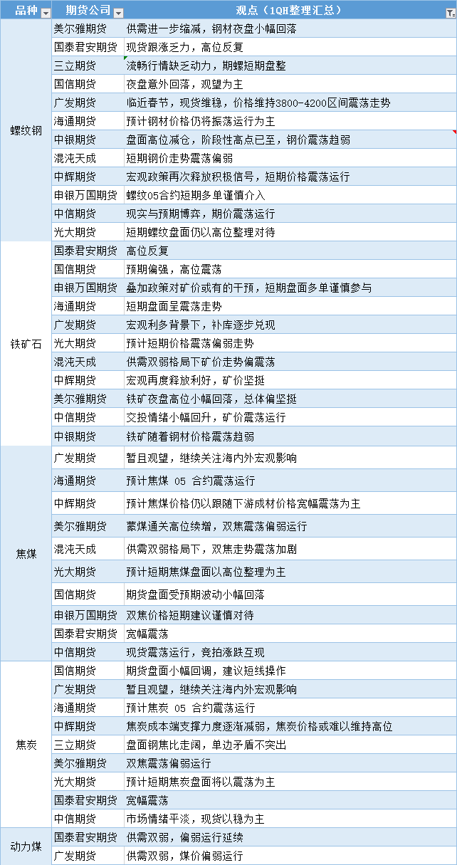 期货公司观点汇总一张图:12月29日黑色系(螺纹钢、焦煤、焦炭、铁矿石、动力煤等)