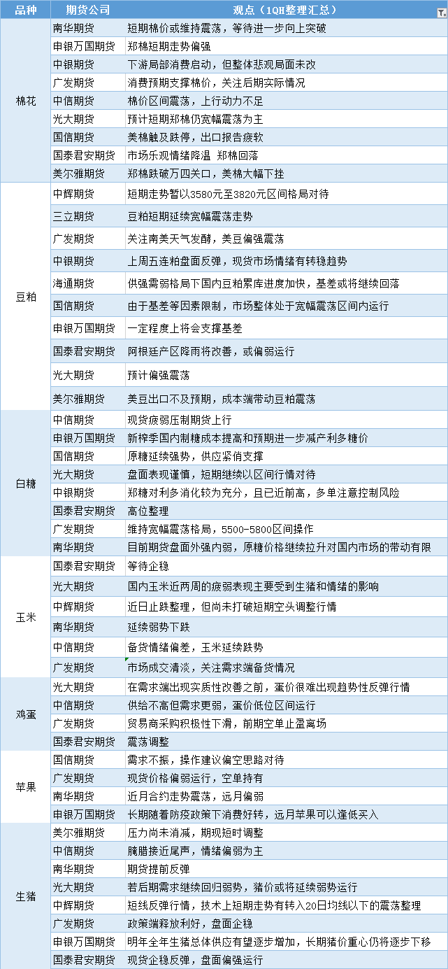 嘉盛集团APP讯——期货公司观点汇总一张图:12月23日农产品(棉花、豆粕、白糖、玉米、鸡蛋、生猪等)