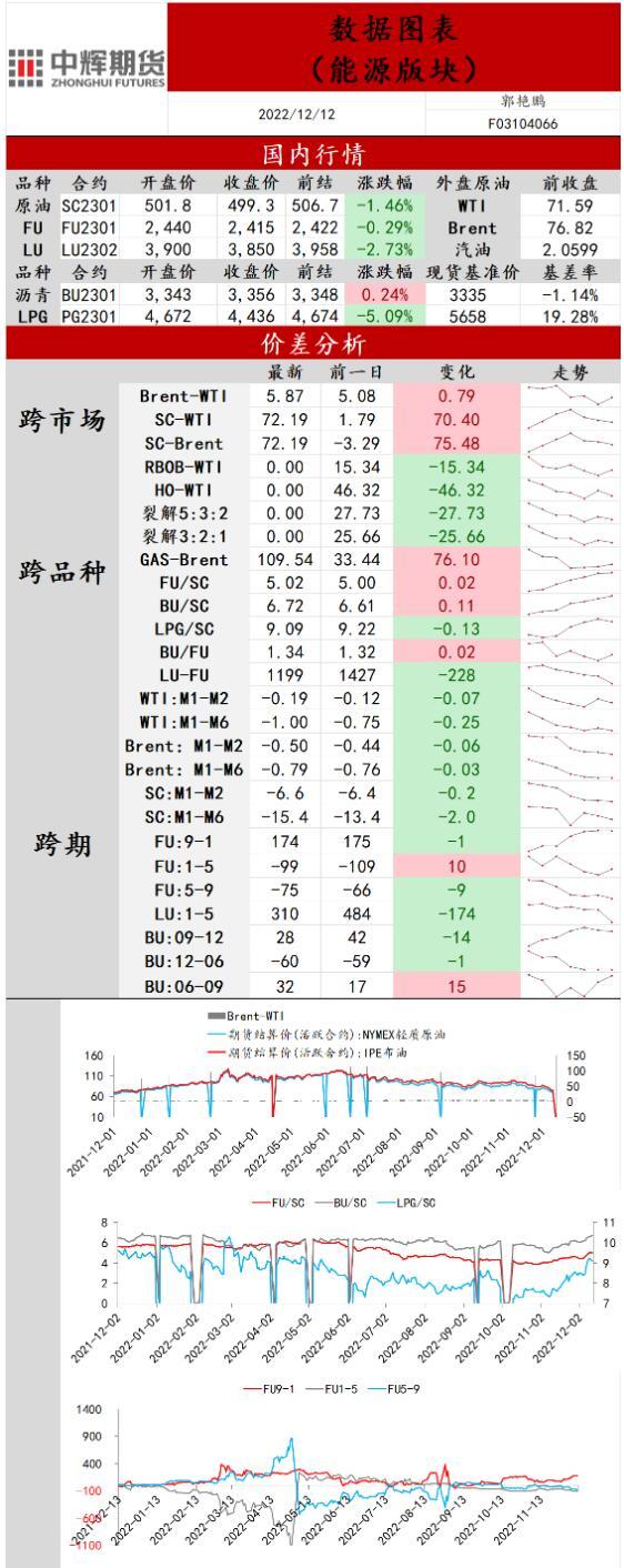 中辉期货原油日报20221212:原油偏空运行,宜观望后市走势