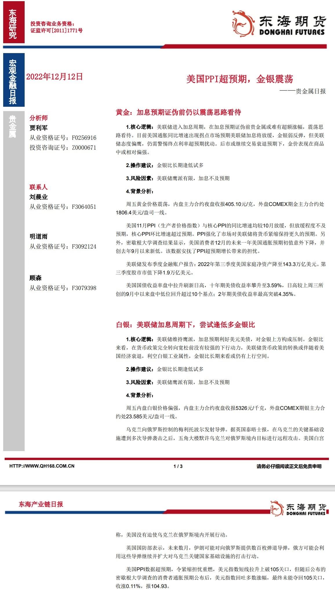 更新: 12 12月 嘉盛集团APP讯——黄金:加息预期证伪前仍以震荡思路看待。白银:美联储加息周期下,尝试逢低多金银比。东海期货公司授权文本由“专注期货开户交易及专业行情分析资讯网站”:【一期货 www.1qh.cn】转发 标题:【东海期货12月12日产业链日报】贵金属篇:美国PPI超预期,金银震荡 地址:https://www.jiasmai.com/article/1005.html ← 【东海期货12月12日宏观金融日报】:美国PPI超预期,短期强化美联储加息预期 → 国际金价收敛跌势,美联储变调在即,但短时间里难变向