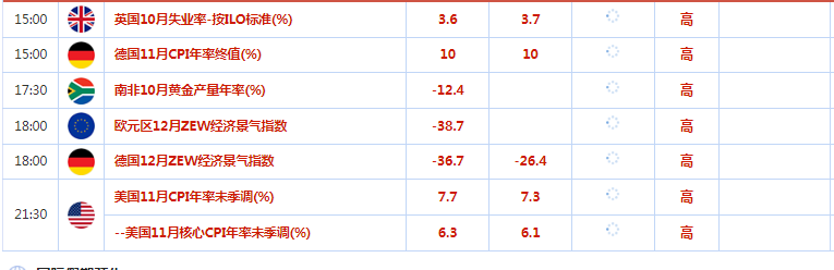 上周五的数据显示,美国11月生产者物价涨幅略高于预期,这加强了美联储可能不得不在更长时间内保持高利率的看法。现在焦点转移到将于周二公布的美国11月消费者物价指数(CPI)报告;美国财长叶伦周日预测,2023年美国通胀将大幅下降。