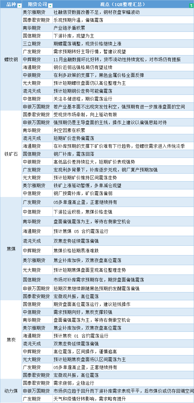 更新: 13 12月 嘉盛集团APP讯——期货公司观点汇总一张图:12月13日黑色系(螺纹钢、焦煤、焦炭、铁矿石、动力煤等) 标题:期货公司观点汇总一张图:12月13日黑色系(螺纹钢、焦煤、焦炭、铁矿石、动力煤等) 地址:https://www.jiasmai.com/article/1029.html ← 期货公司观点汇总一张图:12月13日有色系(铜、锌、铝、镍、锡等) → 【东海期货12月13日宏观金融日报】:美国通胀预期大幅放缓,全球风险偏好有所升温