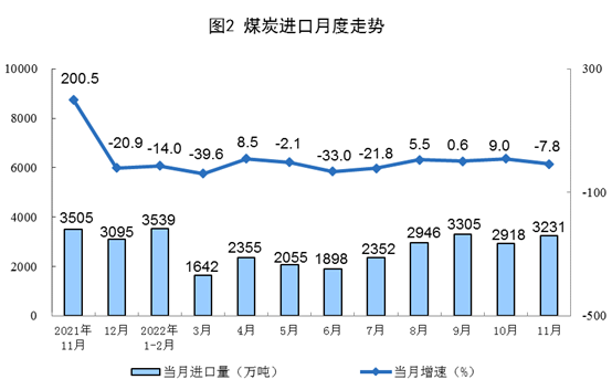 进口数据来源于海关总署,其中2022年11月份数据为快讯数据。