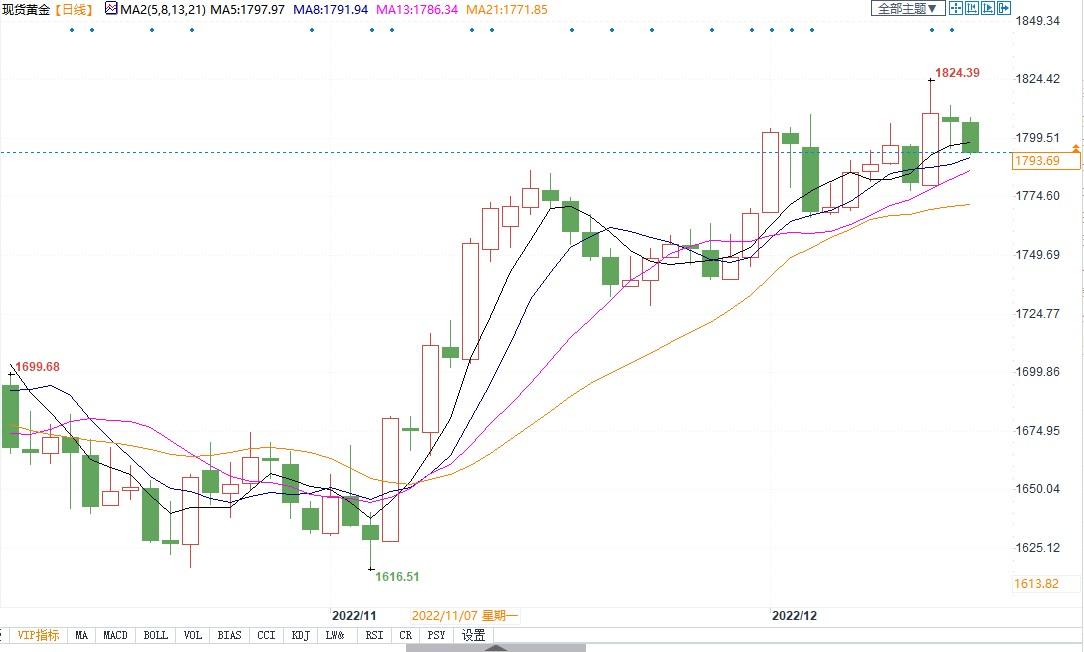 北京时间12月15日11:19,现货黄金报1794.39美元/盎司