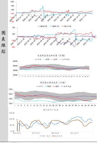 供应端:据美国能源信息署最新数据显示,截止2022年12月15日当周,包括战略储备在内的美国原油库存总量80640万桶,比前一周上升548.3万桶;美国商业原油库存42412.9万桶,比前一周上升1023.1万桶;战略原油库存量38227.1万桶,比上一周下降474.8万桶;美国汽油库存总量22358.3万桶,比前一周上升449.6万桶。商业原油库存比去年同期低0.97%,比过去五年同期低6.54%;汽油库存比去年同期低2.29%,比过去五年同期低约2.52%;馏分油库存比去年同期低2.90%,比过去五年同期低8.06%。