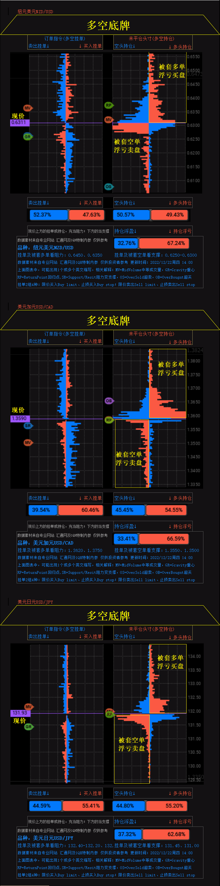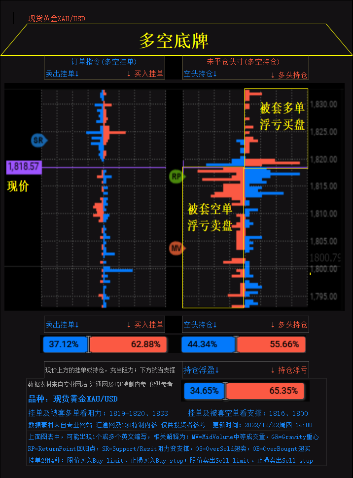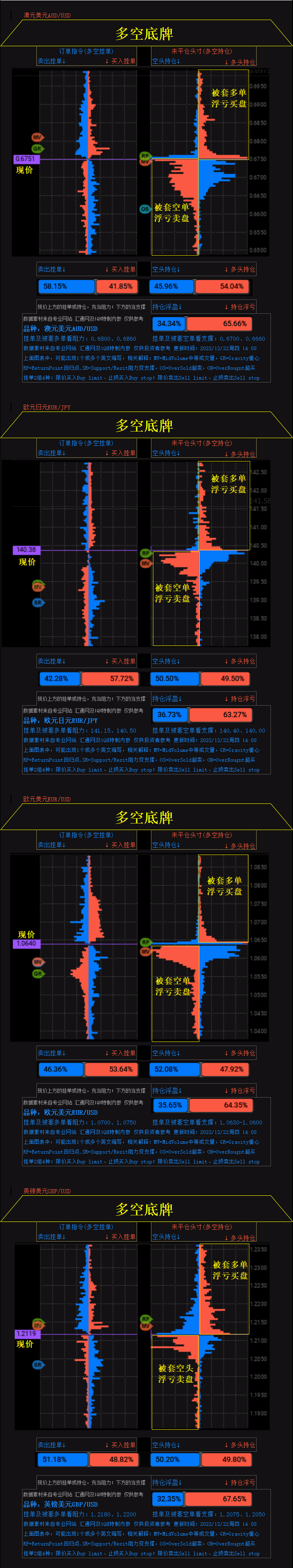 更新: 22 12月 嘉盛集团APP讯——黄金、七大货币对的“多空底牌”一览(2022/12/22周四)。国际现货黄金挂单及被套多单看阻力:1819-1820、1833;挂单及被套空单看支撑:1816、1800。外汇货币对有:澳元美元、美元加元、美元日元、纽元美元、欧元美元、欧元日元、英镑美元。详见下图。本文数据素材来自专业网站,汇通网及1QH特制内参,仅供投资者参考。本文图表中,可能出现1个或多个英文缩写,相关解释为:MV=MidVolume中等成交量,GR=Gravity重心,RP=ReturnPoint回归点,SR=Support/Resit阻力变支撑,OS=OverSold超卖,OB=OverBougnt超买。挂单2组4种:限价买入Buy limit、止损买入Buy stop;限价卖出Sell limit、止损卖出Sell stop。 标题:黄金、七大货币对的“多空底牌”一览(2022/12/22周四) 地址:https://www.jiasmai.com/article/1193.html ← 国际金价持稳,但配置黄金机构已不建议再等待 → 现货黄金交易策略:初请数据来袭,美元走弱或助多头“攻城拔寨”