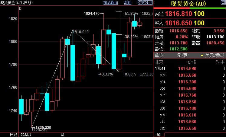北京时间19:39,现货黄金上浮0.02%至1814.50美元/盎司;COMEX期金主力合约下跌0.10%至1823.5美元/盎司;美元指数下跌0.13%至104.117,美指盘中跌创一周新低至103.742。