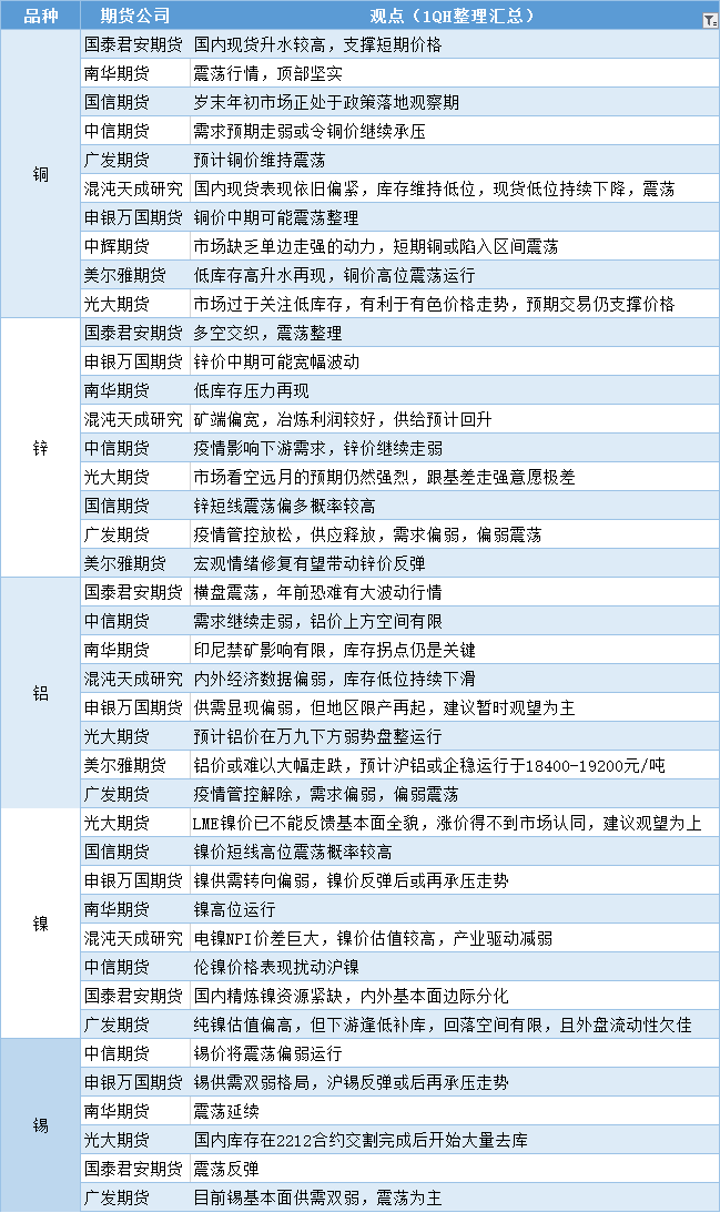 更新: 26 12月 嘉盛集团APP讯——期货公司观点汇总一张图:12月26日有色系(铜、锌、铝、镍、锡等) 标题:期货公司观点汇总一张图:12月26日有色系(铜、锌、铝、镍、锡等) 地址:https://www.jiasmai.com/article/1252.html ← 期货公司观点汇总一张图:12月26日农产品(棉花、豆粕、白糖、玉米、鸡蛋、生猪等) → 期货公司观点汇总一张图:12月26日黑色系(螺纹钢、焦煤、焦炭、铁矿石、动力煤等)