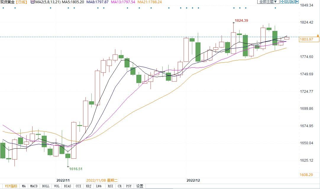 北京时间12月27日13:35,现货黄金报1804.09美元/盎司