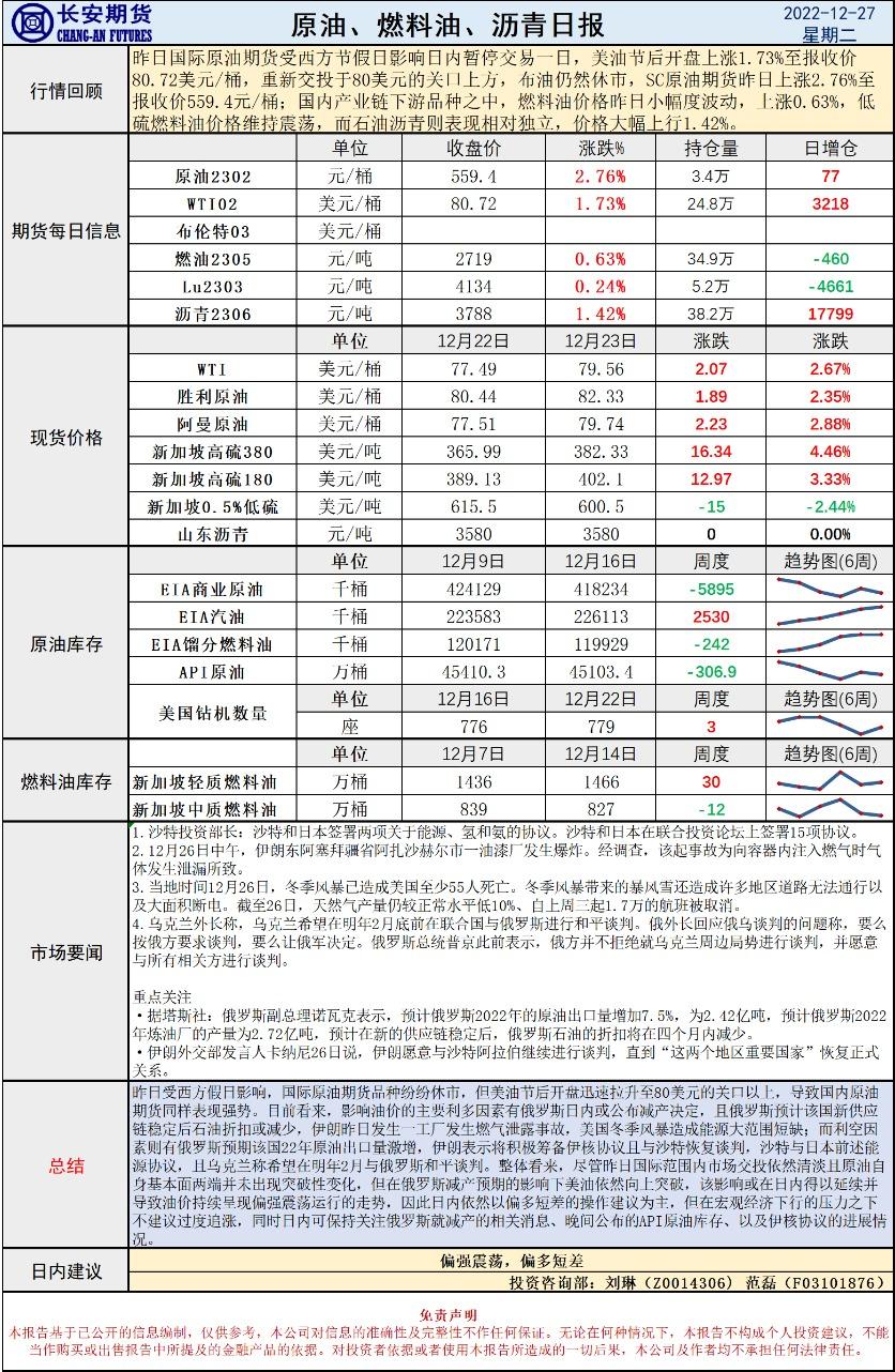 更新: 27 12月 嘉盛集团APP讯——12月27日,长安期货发布原油早评,认为原油将偏强震荡,建议偏多短差。长安期货公司授权文本由“专注期货开户交易及专业行情分析资讯网站”:【一期货 www.1qh.cn】转发 标题:长安期货原油早评:原油将偏强震荡,建议偏多短差 地址:https://www.jiasmai.com/article/1287.html ← 期货公司观点汇总一张图:12月27日有色系(铜、锌、铝、镍、锡等) → 现货黄金走高,美国通胀压力确认松动?来年须防更多意外