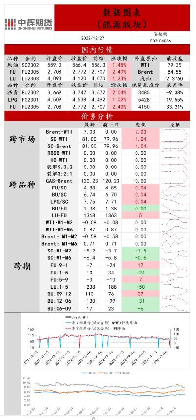 供应端:据美国能源信息署最新数据显示,截止2022年12月16日当周,包括战略储备在内的美国原油库存总量79685.8万桶,比前一周下降954.2万桶;美国商业原油库存41823.4万桶,比前一周下降589.5万桶;战略原油库存量37862.4万桶,比上一周下降364.7万桶;美国汽油库存总量22611.3万桶,比前一周上升253万桶。商业原油库存比去年同期低1.26%,比过去五年同期低7.19%;汽油库存比去年同期低0.89%,比过去五年同期低约1.92%;馏分油库存比去年同期低3.40%,比过去五年同期低7.58%。