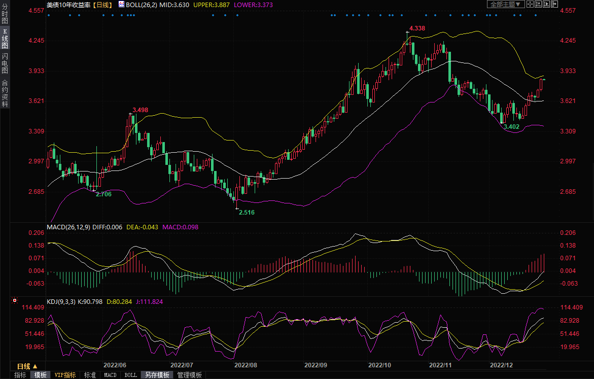 10年期美债收益率周二攀升10.4个基点,收报3.851%,稍早触及3.862%的11月16日以来高位。