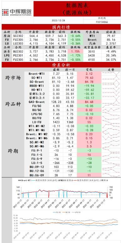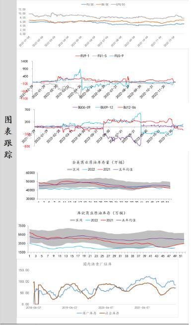 供应端:据美国能源信息署最新数据显示,截止2022年12月16日当周,包括战略储备在内的美国原油库存总量79685.8万桶,比前一周下降954.2万桶;美国商业原油库存41823.4万桶,比前一周下降589.5万桶;战略原油库存量37862.4万桶,比上一周下降364.7万桶;美国汽油库存总量22611.3万桶,比前一周上升253万桶。商业原油库存比去年同期低1.26%,比过去五年同期低7.19%;汽油库存比去年同期低0.89%,比过去五年同期低约1.92%;馏分油库存比去年同期低3.40%,比过去五年同期低7.58%。