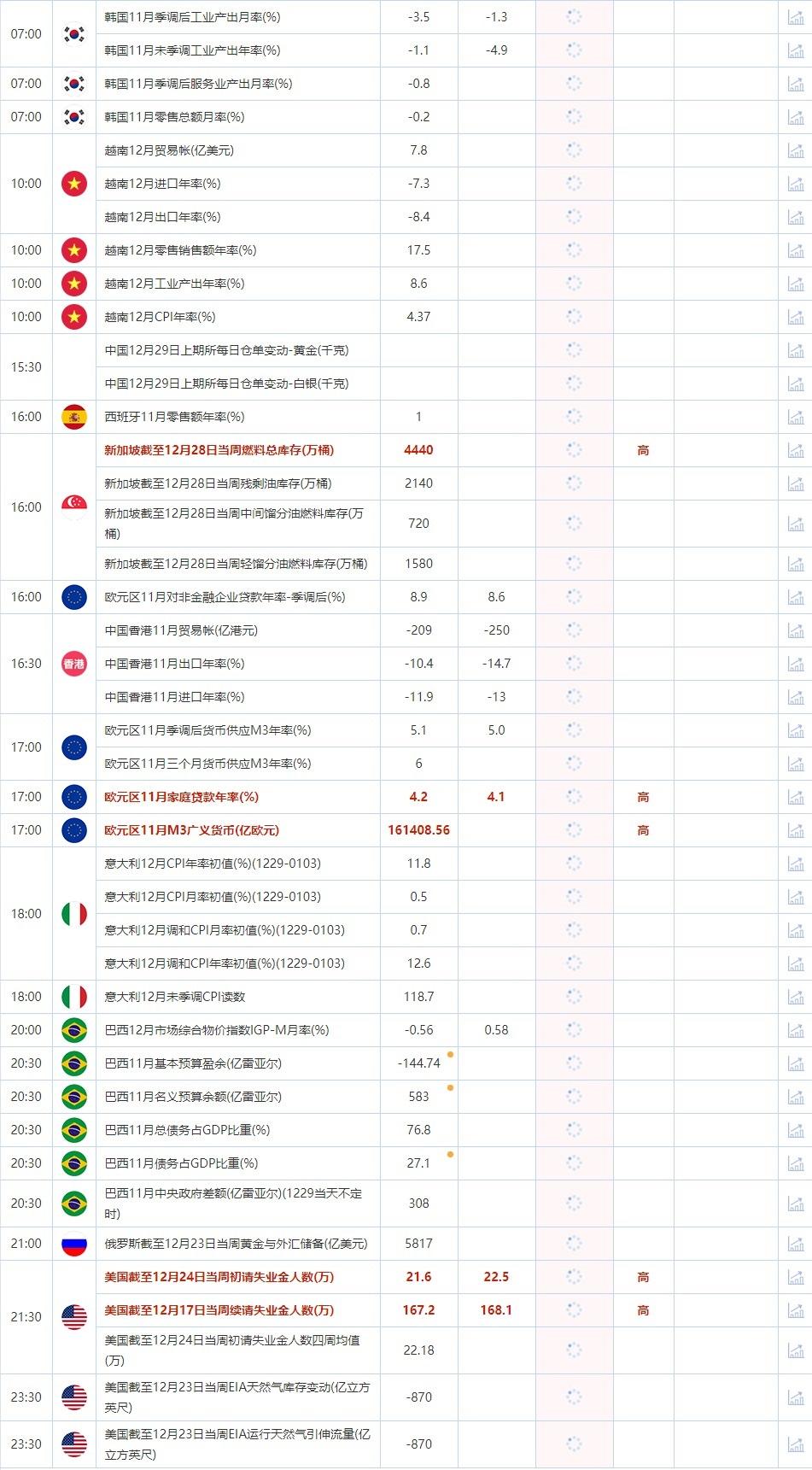 后续及时更新的财历数据请关注:【汇通网12月29日财经日历】