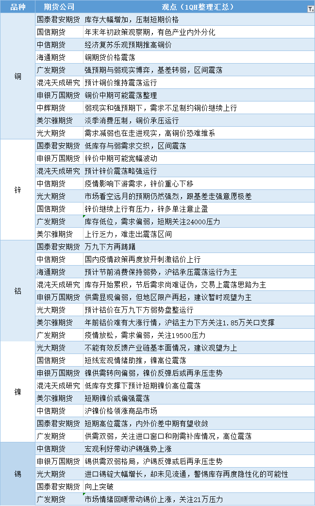 更新: 30 12月 嘉盛集团APP讯——期货公司观点汇总一张图:12月30日有色系(铜、锌、铝、镍、锡等) 标题:期货公司观点汇总一张图:12月30日有色系(铜、锌、铝、镍、锡等) 地址:https://www.jiasmai.com/article/1362.html ← 期货公司观点汇总一张图:12月30日农产品(棉花、豆粕、白糖、玉米、鸡蛋、生猪等) → 期货公司观点汇总一张图:12月30日黑色系(螺纹钢、焦煤、焦炭、铁矿石、动力煤等)