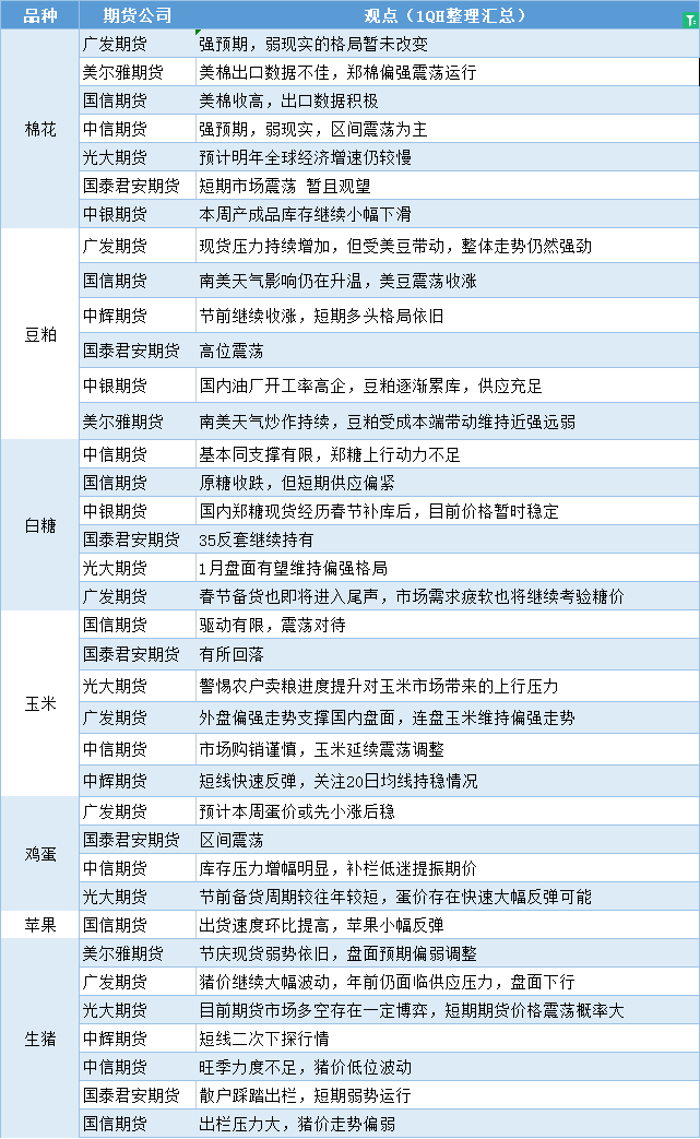 更新: 03 01月 嘉盛集团APP讯——期货公司观点汇总一张图:1月3日农产品(棉花、豆粕、白糖、玉米、鸡蛋、生猪等) 标题:期货公司观点汇总一张图:1月3日农产品(棉花、豆粕、白糖、玉米、鸡蛋、生猪等) 地址:https://www.jiasmai.com/article/1386.html ← 专家预测2023年油市诸多利空消失,应该能推高油价! → 期货公司观点汇总一张图:1月3日有色系(铜、锌、铝、镍、锡等)