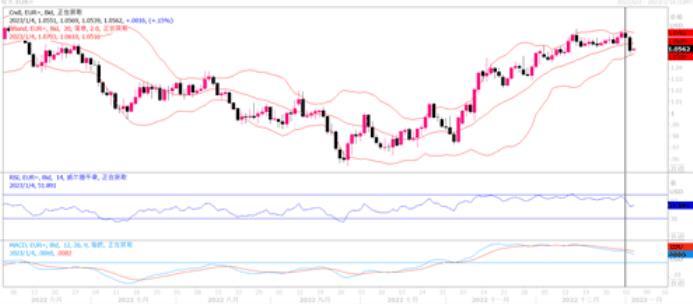 周二(1月3日),美元在新年伊始创下了强劲开局,美元指数单日涨幅超过1%,一干非美货币集体出现下跌。欧元对美元单日跌幅达1.12%,盘中最低去抵1.0541,收盘于1.0548。进入上年的3、4季度,由于美国通胀数据出现明显放缓的迹象,使得市场对于美国2023年经济会出现衰退以及降息产生了预期,导致美元指数于第四季度开始调整,短短三个月跌幅达7%。美元调整是市场对美联储货币政策预期的体现,但是我们不能忽略的是,截至当下,美联储决策者们从未松口表示要暂停加息,且均表示需要在一段时间内保持限制性的政策立场。因此,随着新年的来临,恐怕交易人员和投资者们会重新把焦点目光放在美联储对于货币政策的态度和举措上来。只要美国通胀率没有回到4.5%以下,美联储的加息之旅恐怕就难以结束,届时美元相比其它主要经济体货币在利差上还是占据着优势。目前日线图上,久攻不上的欧元兑美元赫然出现一根大阴线,显示欧元重新被空头势力选为目标,各类技术指标开始有向下摆动苗头。近阶段密切留意1.05关口的支撑,若跌破,欧元兑美元恐重回下跌之旅。