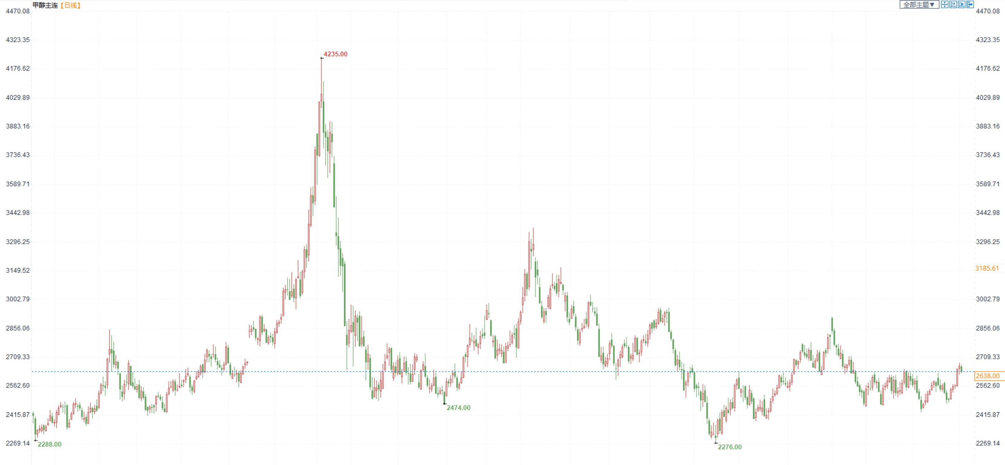 期货市场,甲醇2305合约小幅收跌,收盘价2638。现货端,港口库存低,目前现货依旧强势于期货。