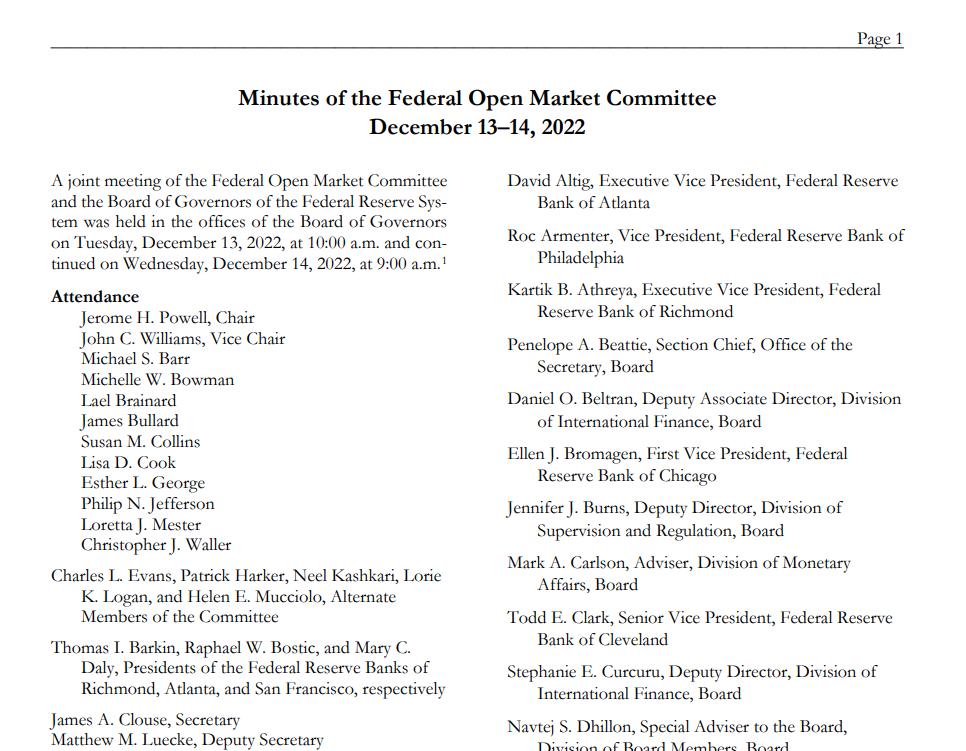 纪要同时重申,没有任何一位与会者预期在2023年开始降息会是妥当的行为。