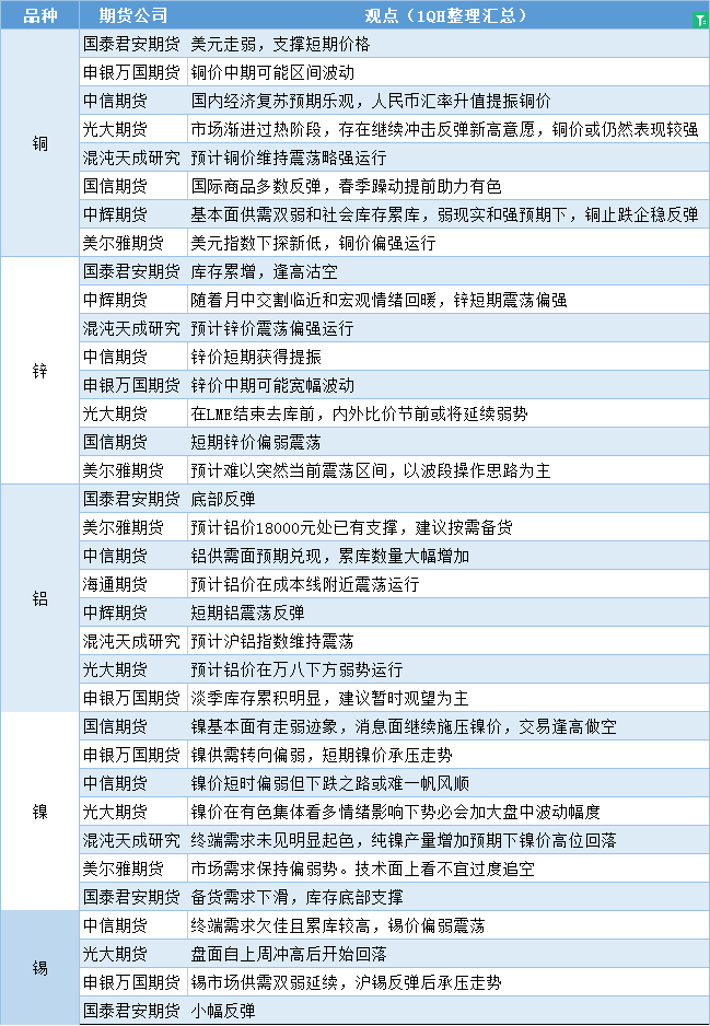 更新: 10 01月 嘉盛集团APP讯——期货公司观点汇总一张图:1月10日有色系(铜、锌、铝、镍、锡等) 标题:期货公司观点汇总一张图:1月10日有色系(铜、锌、铝、镍、锡等) 地址:https://www.jiasmai.com/article/1520.html ← 期货公司观点汇总一张图:1月10日农产品(棉花、豆粕、白糖、玉米、鸡蛋、生猪等) → 期货公司观点汇总一张图:1月10日黑色系(螺纹钢、焦煤、焦炭、铁矿石、动力煤等)